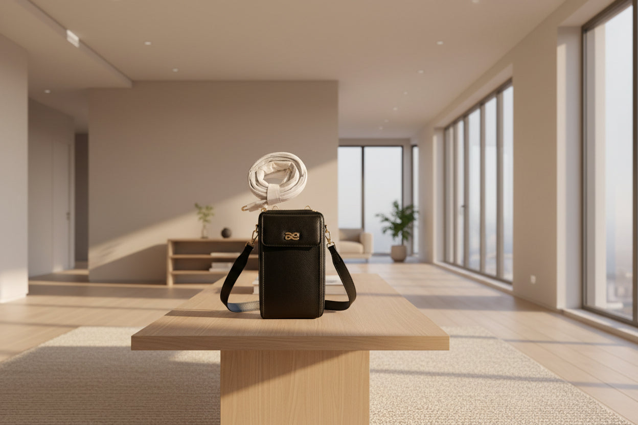 A compact, small but stylish bag that keeps your phone and wallet together and lets you go hands-free — perfect for casual days, events, or when you want something lighter than a full-size handbag. Usually fits most modern phones (even larger models) plus cards and cash.